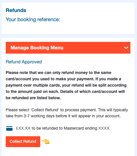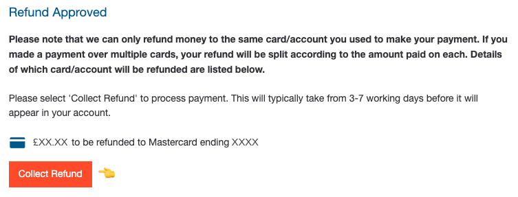 Step 3: You will then be taken to a page showing the amount due and the last four digits of the card we're returning it to. If this is correct, simply click Collect refund again.