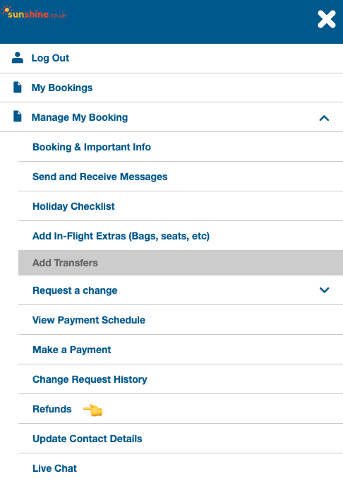 Step 4: If you don't see the refund notification, hit the Menu button again and tap the arrow to open out the Manage My Booking section.